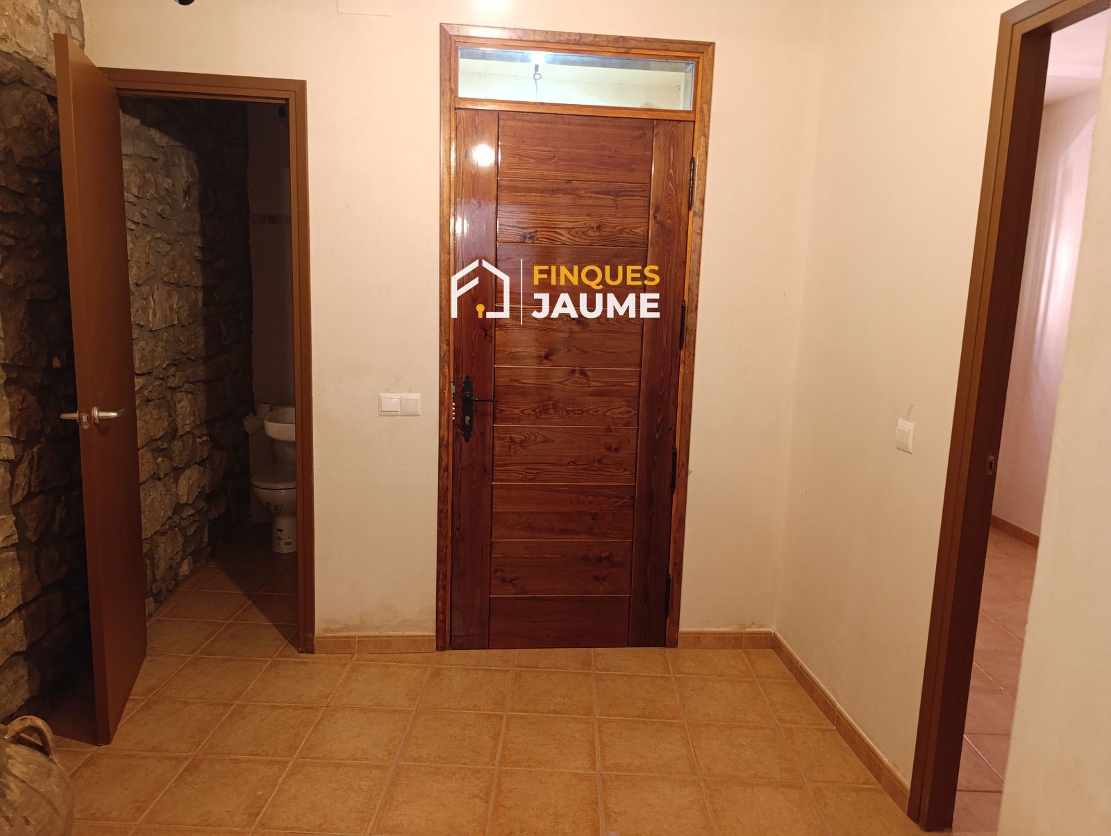 Compta amb la fusteria interior de fusta de color roure, sòls de gres, bonica escala interior de fusta.