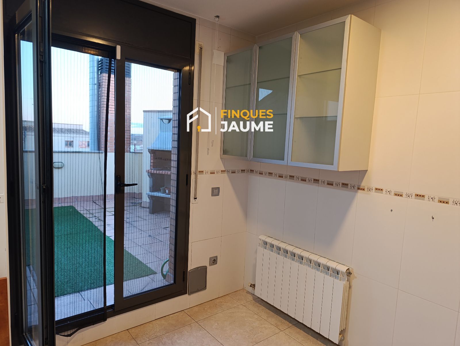 Inmueble situado en la planta 2a exterior con ascensor, en un edificio construido el año 2006. Las terrazas están orientadas a este y oeste, garantizando así luz durante todo el día, para poder disfrutar de comidas y barbacoas con los amigos y familia. El piso está semiamueblado. Tiene calefacción de gas natural y aire acondicionado. El suelo de gres , carpintería interior de madera de haya y la exterior de aluminio oscuro con doble cristal y con mosquiteras en cocina, despacho, y comedor.
